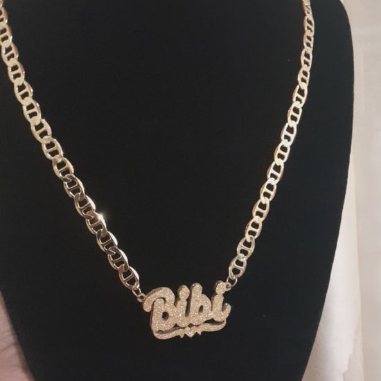 18k Gold-Plated Stainless Steel, frosted double layer heart,Customizable necklace.[MJ037]
