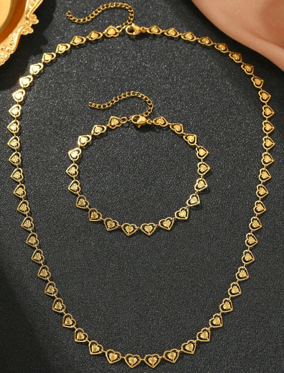 2pcs/Set Stainless Steel Heart Shaped Bracelet And Necklace Set