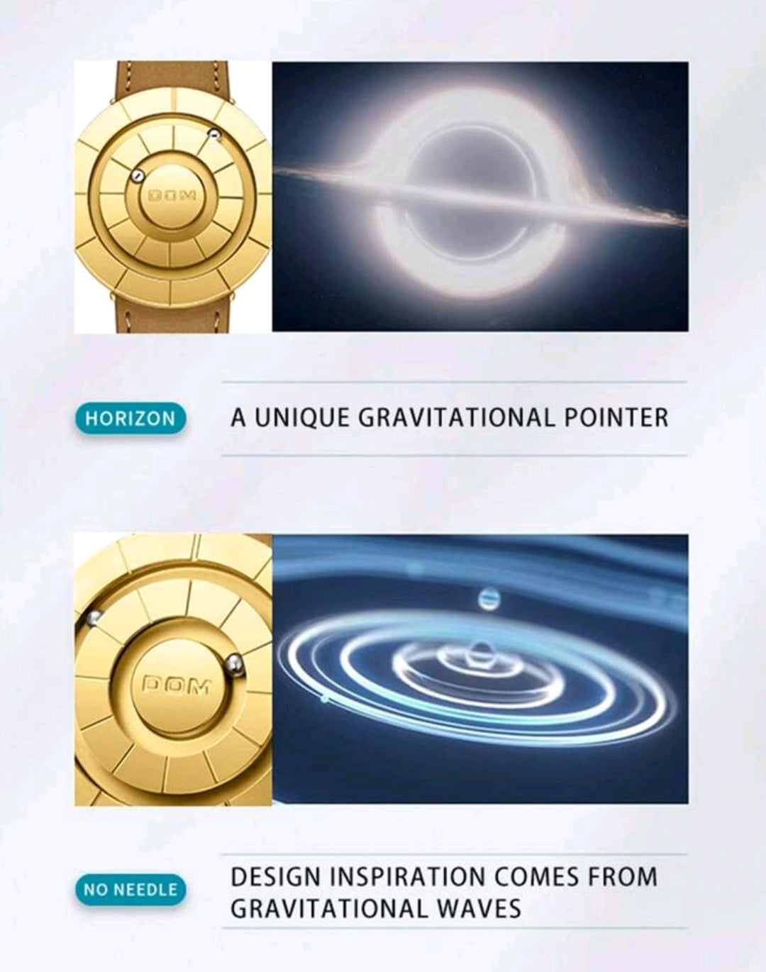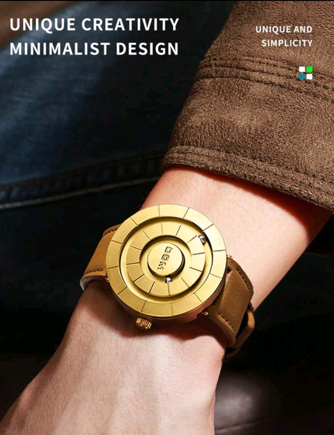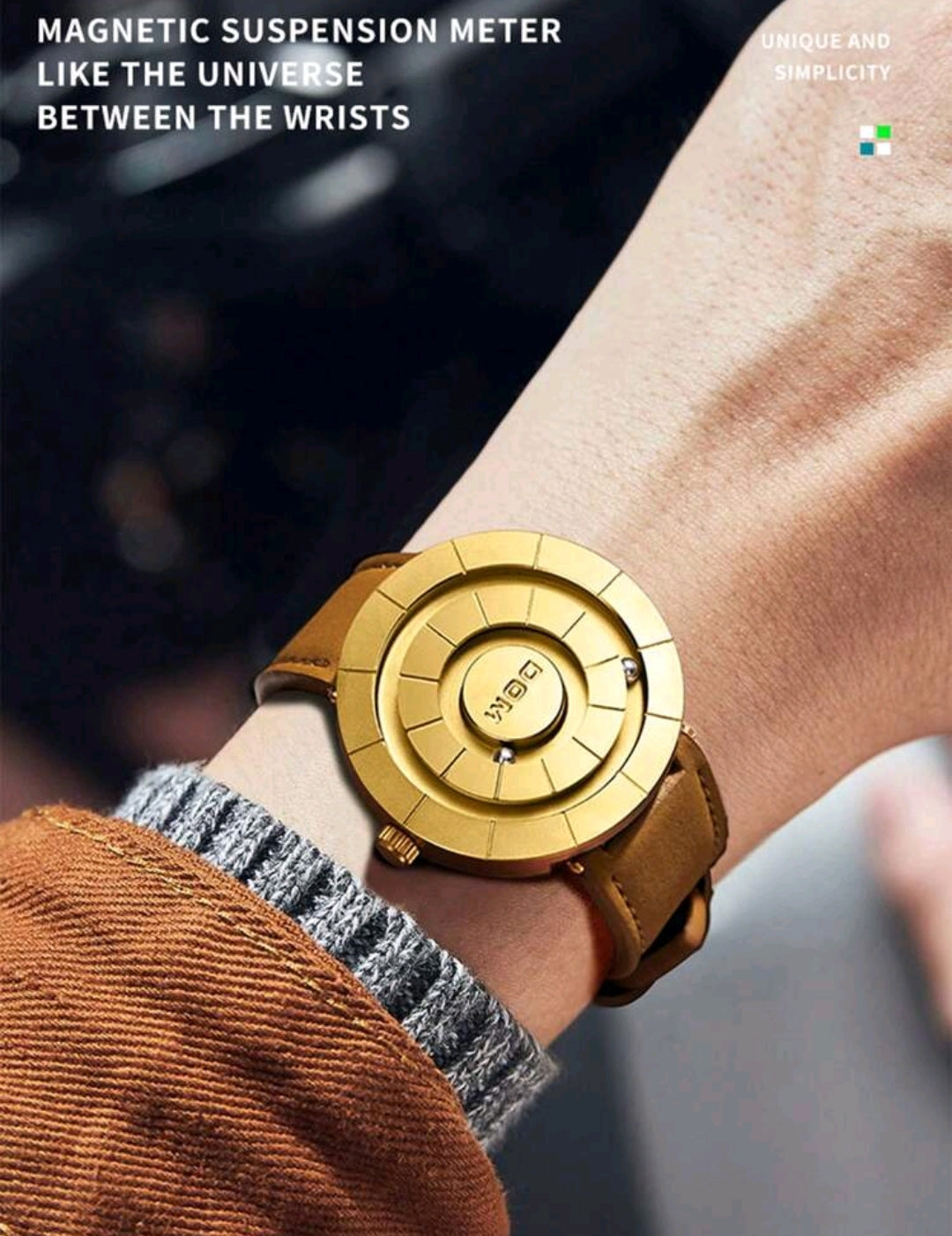 DOM Men's Watch, Advanced Technology Mirrorless Magnetic Leather Band Waterproof Casual Wristwatch, 30M Water Resistant